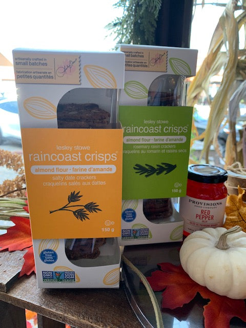 These crackers are artisinally crafted in small batches and have always been a favourite on cheese boards and with various appetizers. Now available in a GLUTEN FREE version which are every bit as good at the regular ones. Made with almond flour they are available in Rosemary Raisin and Salty Date.